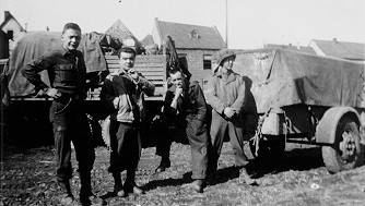 ![]() Kenny Ely, Bill Connell and Jim Giondone. Taken in England After They Shaved Heads Before Going to France. |